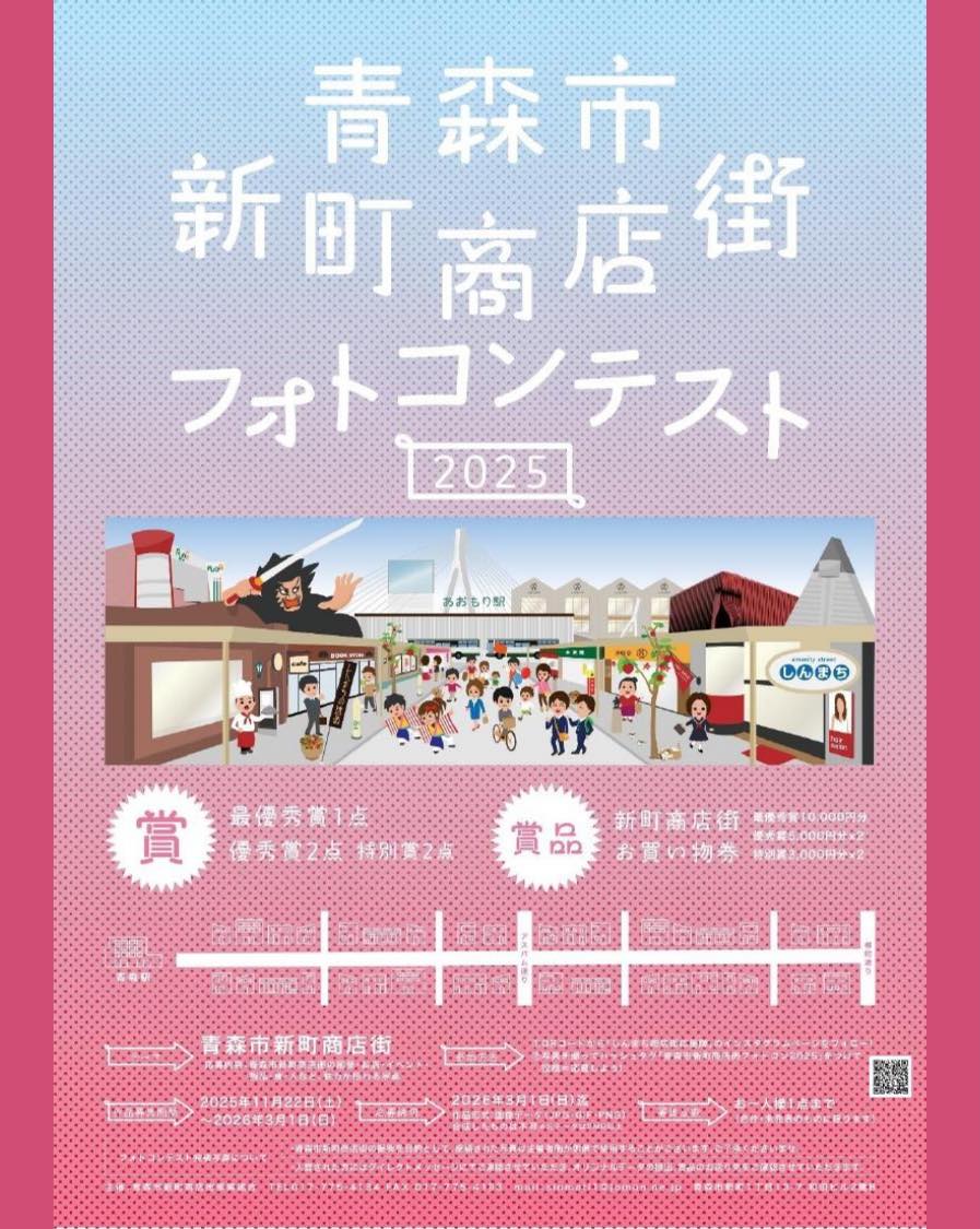 ●結果発表:入賞作品は「しんまち商店街応援隊」インスタグラムページ・新町商店街HPにて発表し、青森市新町商店街アーケードパネルに掲示となります(期間:2026年3月2日(月)~31日(火)予定