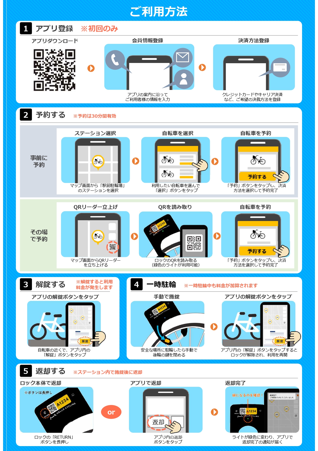 ステーション場所、ご利用時間、ご利用方法
